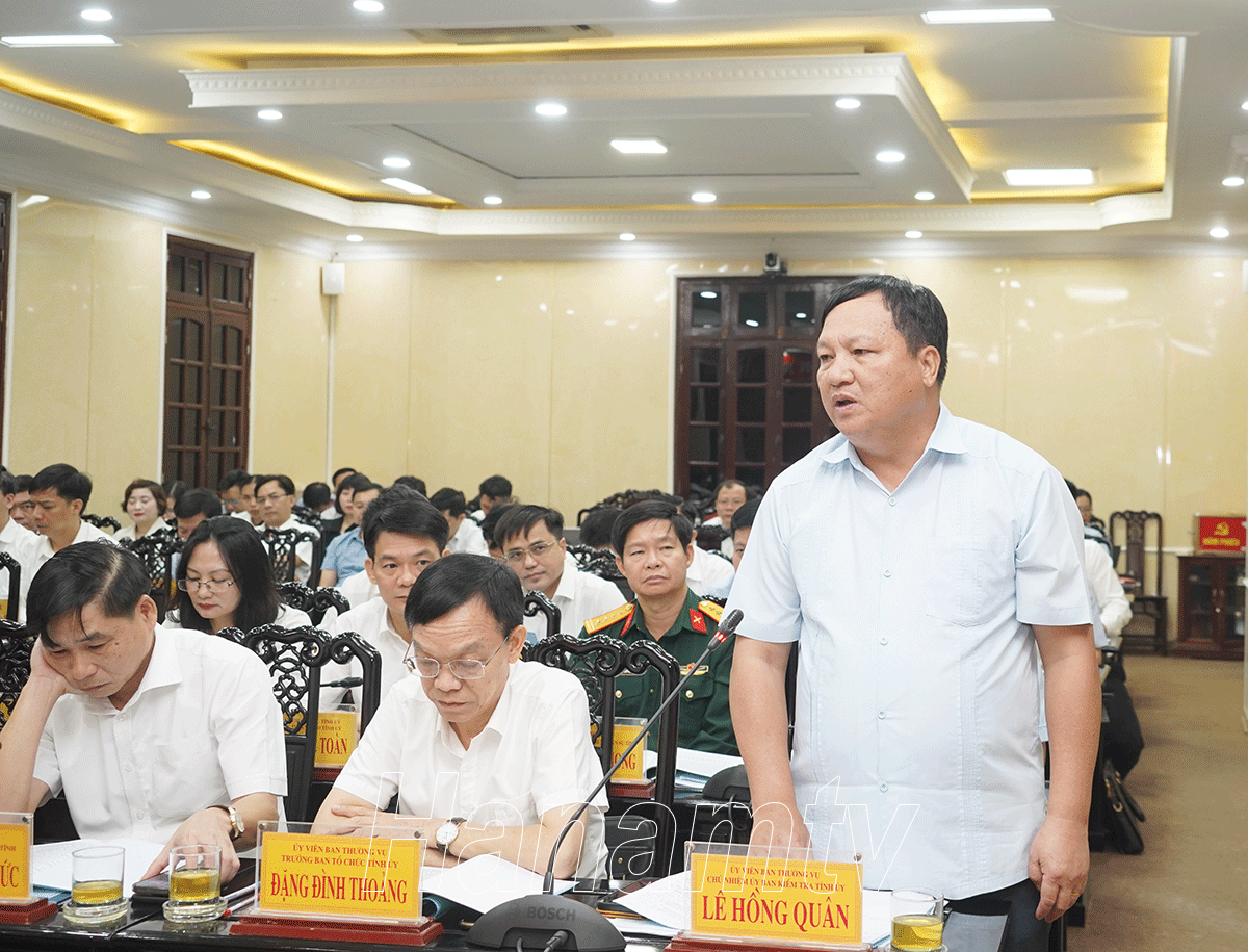 Đồng chí Lê Hồng Quân, Ủy viên BTV Tỉnh ủy, Chủ nhiệm Ủy ban Kiểm tra Tỉnh ủy phát biểu tại hội nghị.