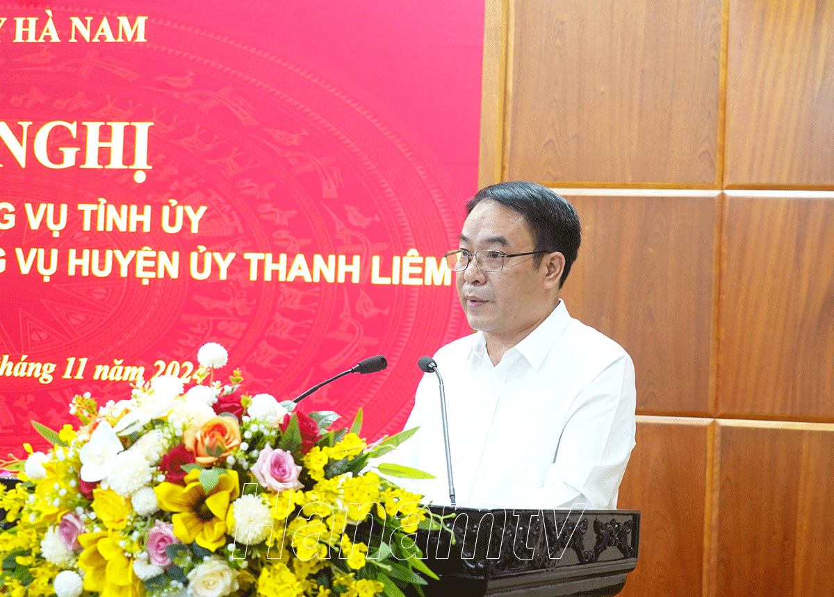 Trong đó, đồng chí yêu cầu Thanh Liêm tiếp tục lãnh đạo, chỉ đạo thực hiện có hiệu quả các Nghị quyết của Trung ương, các Nghị quyết, Chương trình, Đề án của Tỉnh ủy, BTV Tỉnh ủy. Làm tốt công tác giáo dục chính trị, tư tưởng; đẩy mạnh thực hiện Nghị quyết Trung ương 4 (khóa XII), Kết luận số 21-KL/TW của Ban Chấp hành Trung ương về xây dựng, chỉnh đốn đảng và hệ thống chính trị gắn với thực hiện Chỉ thị số 05-CT/TW và Kết luận số 01-KL/TW của Bộ Chính trị về học tập và làm theo tư tưởng, đạo đức, phong cách Hồ Chí Minh; tích cực đấu tranh phản bác các quan điểm sai trái, thù địch, bảo vệ nền tảng tư tưởng của Đảng. Tăng cường củng cố, xây dựng tổ chức cơ sở đảng và nâng cao chất lượng đội ngũ đảng viên trong giai đoạn mới. Tiếp tục thực hiện tốt công tác đào tạo, bồi dưỡng, điều động, luân chuyển cán bộ để chuẩn bị nhân sự Đại hội Đảng bộ các cấp nhiệm kỳ 2025-2030 và bầu cử đại biểu HĐND các cấp nhiệm kỳ 2026 - 2031, bảo đảm số lượng, chất lượng, tỷ lệ cán bộ nữ, cán bộ trẻ. Nâng cao chất lượng công tác kiểm tra, giám sát thi hành kỷ luật đảng; Làm tốt công tác dân vận, nhất là dân vận chính quyền. Nâng cao chất lượng công tác nội chính, cải cách tư pháp và phòng chống tham nhũng, lãng phí, tiêu cực…