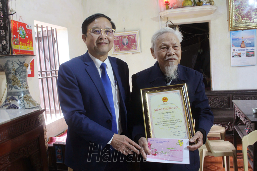 Đồng chí Nguyễn Đức Vượng, Tỉnh ủy viên, Phó Chủ tịch UBND tỉnh trao kinh phí tặng quà Tết hộ nghèo, hộ cận nghèo cho huyện Lý Nhân.Đồng chí Phó Chủ tịch UBND tỉnh Nguyễn Đức Vượng thăm, chúc Tết, mừng thọ tròn 90 tuổi cho cụ Ngô Quốc Sử.