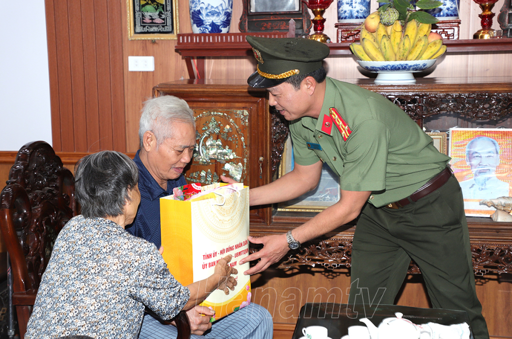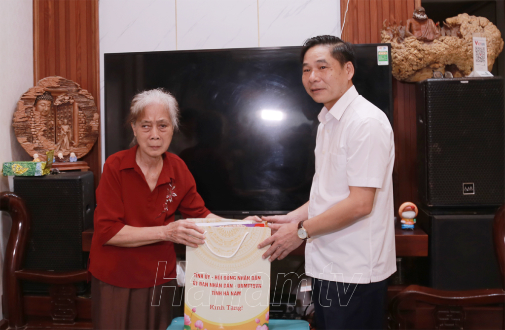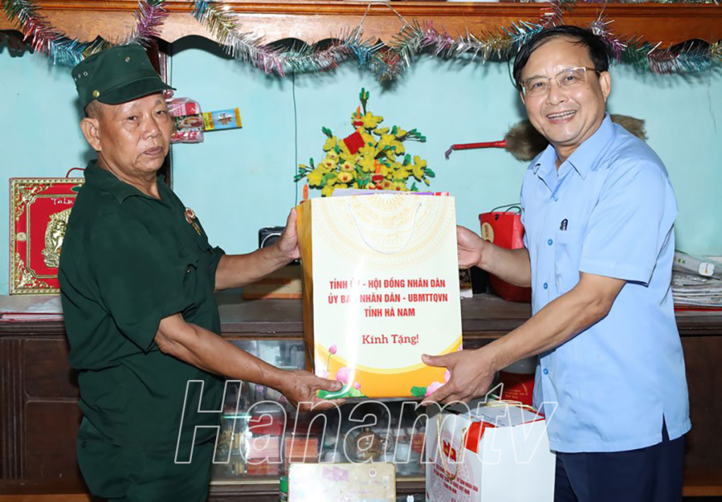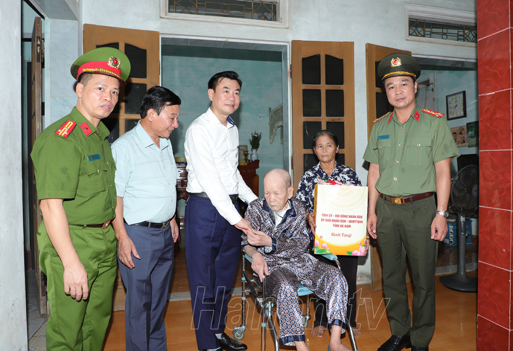 Đồng chí Lê Hồng Quân, Ủy viên BTV Tỉnh ủy, Chủ nhiệm Ủy ban Kiểm tra Tỉnh ủy thăm hỏi, tặng quà Mẹ Việt Nam Anh hùng Nguyễn Thị Chinh, ở tổ dân phố Ngô Tân, phường Tiên Nội.Đồng chí Chỉ huy trưởng Bộ Chỉ huy Quân sự tỉnh Trịnh Hồng Phongtặng quà cho ông Phạm Văn Hải, là người tham gia kháng chiến bị nhiễm chất độc hóa học ( ở thôn 3 Tâng, xã Thanh Hương, huyện Thanh Liêm).Đại tá Tô Anh Dũng, Ủy viên BTV Tỉnh ủy, Giám đốc Công an tỉnh trao tặng quà của tỉnh cho thân nhân Liệt sĩ Trần Văn Khương, thôn Đội 6, xã Ngọc Lũ, Bình Lục.Đại tá Tô Anh Dũng, Ủy viên BTV Tỉnh ủy, Giám đốc Công an tỉnh cùng lãnh đạo huyện Bình Lục thăm, tặng quà thương binh Trần Ngọc Sắc, trú tại thôn Đội 2, xã Ngọc Lũ, huyện Bình LụcĐồng chí Phó Chủ tịch UBND tỉnh Nguyễn Đức Vượng trao tặng quà cho thân nhân liệt sỹ ở thôn Đồng Nhuệ, Nhân Bình (Lý Nhân).Đồng chí Phó Chủ tịch UBND tỉnh Nguyễn Đức Vượng trao tặng quà cho ông Trần Văn Đạt, là thương binh ở thôn 3, Nhân Nghĩa (Lý Nhân).