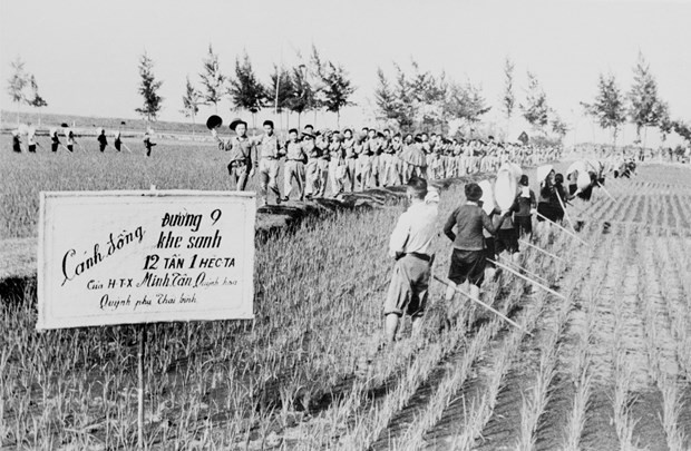 Phong trào Thanh niên "Ba sẵn sàng" của Thái Bình: Người lên đường chiến đấu, người ở lại hậu phương thi đua sản xuất dưới bom đạn, (tháng 8/1964), sau khi Mỹ mở rộng đánh phá bằng không quân ra miền Bắc trong kháng chiến chống Mỹ, cứu nước. (Ảnh: Tư liệu TTXVN)