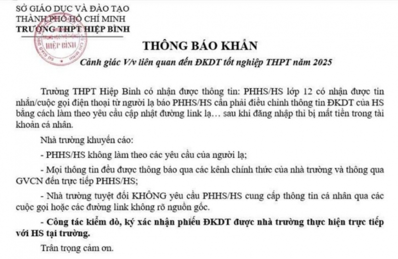 Cảnh báo thủ đoạn lừa đảo nhắm vào phụ huynh học sinh lớp 12