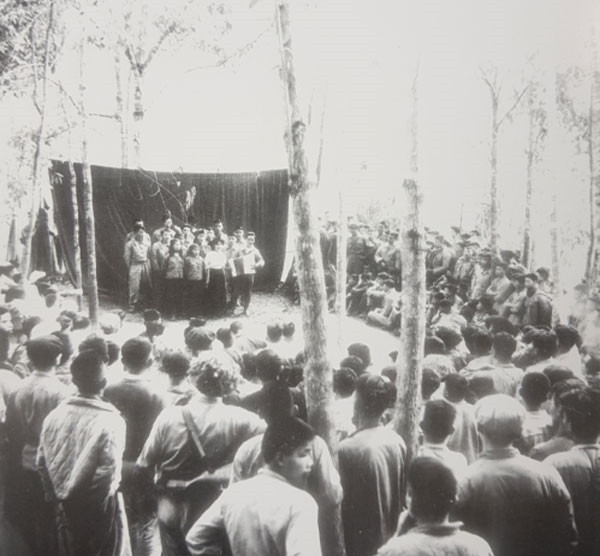 Văn công phục vụ bộ đội, dân công tại mặt trận Điện Biên Phủ.