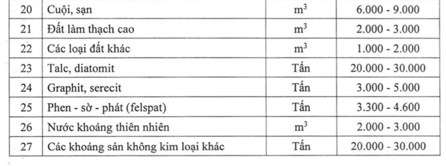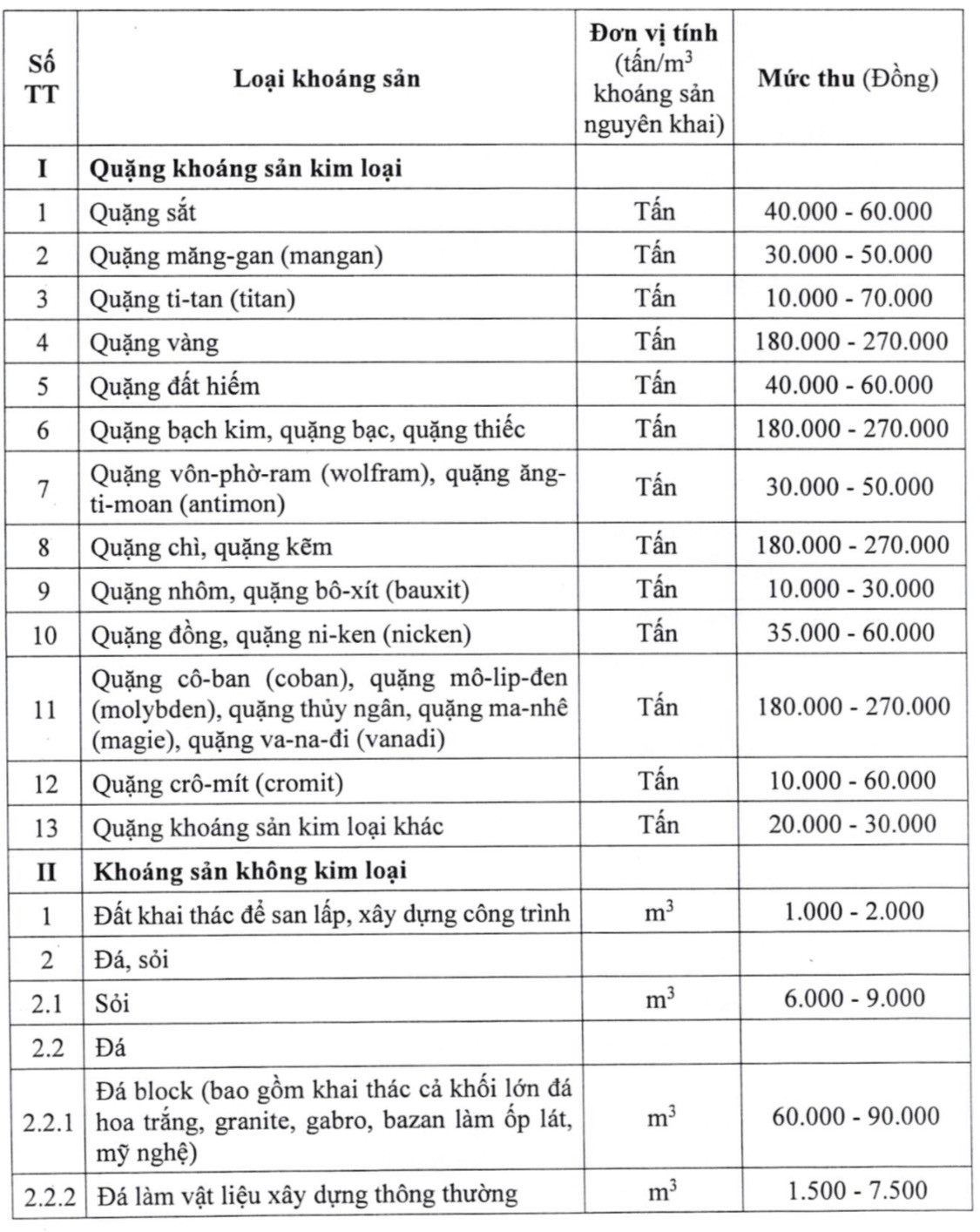 Mức thu phí bảo vệ môi trường đối với khai thác khoáng sản (bao gồm cả trường hợp hoạt động sản xuất, kinh doanh của tổ chức, cá nhân không nhằm mục đích khai thác khoáng sản nhưng thu được khoáng sản) theo Biểu khung mức thu phí.