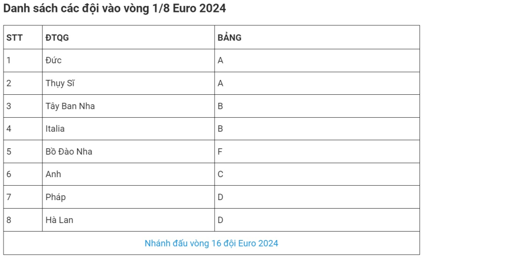 CHÍNH THỨC: Xác định 8/16 đội bóng vào vòng 1/8 Euro 2024