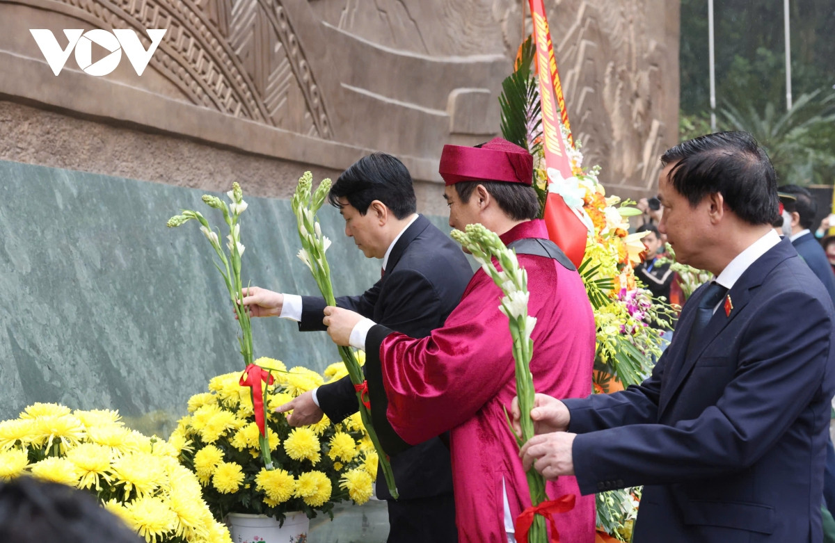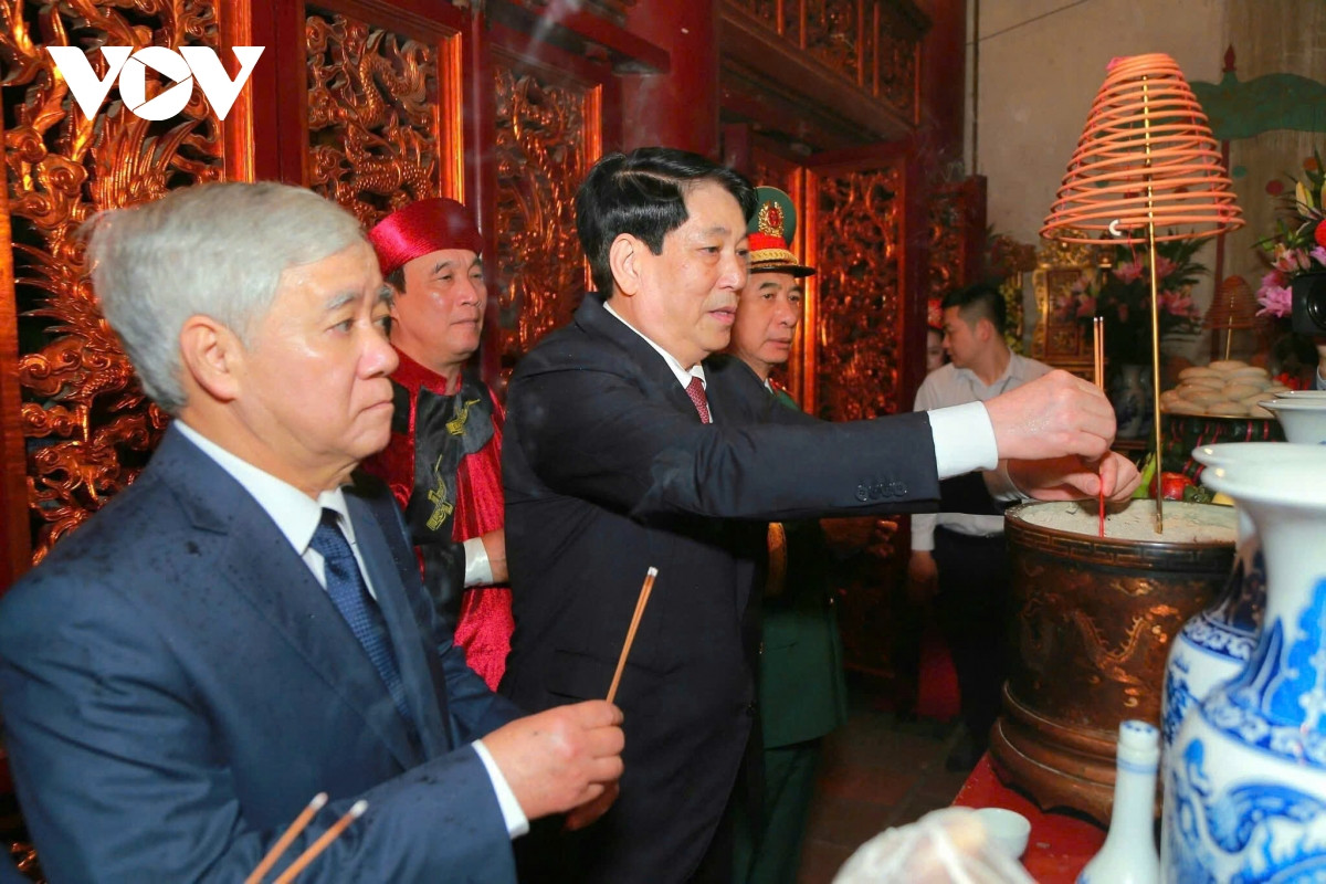 Chủ tịch nước Lương Cường cùng các đại biểu dâng hương tri ân công đức tổ tiên.