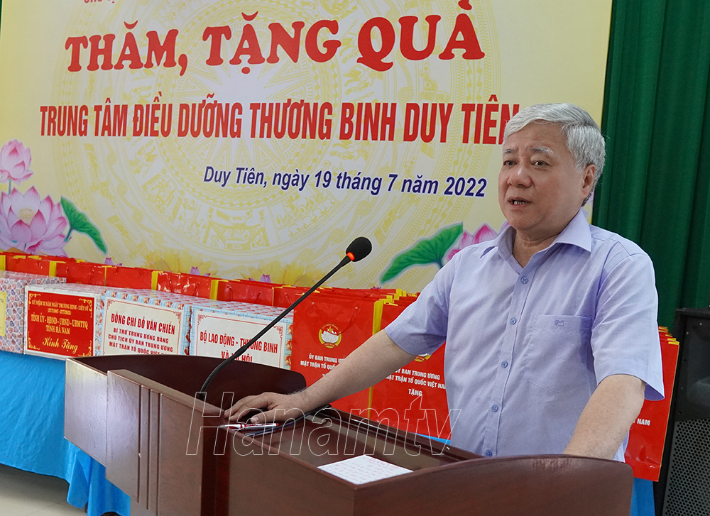 Bày tỏ vui mừng, xúc động khi được về thăm, động viên và trò chuyện với các thương, bệnh binh tại Trung tâm điều dưỡng thương binh Duy Tiên, thay mặt lãnh đạo Đảng, Nhà nước, Chủ tịch Ủy ban Trung ương MTTQ Việt Nam Đỗ Văn Chiến bày tỏ sự trân trọng, tri ân sâu sắc đối với những đóng góp, hy sinh của các thương, bệnh binh cho sự nghiệp đấu tranh giải phóng dân tộc, thống nhất đất nước.