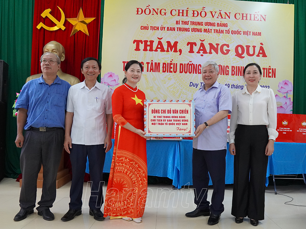 Đồng chí Đỗ Văn Chiến, Bí thư Trung ương Đảng, Chủ tịch Ủy ban Trung ương MTTQ Việt Nam tặng quà Trung tâm điều dưỡng thương binh Duy TiênĐồng chí Đinh Thị Lụa, Phó Bí thư Thường trực Tỉnh ủy tặng quà Trung tâm điều dưỡng thương binh Duy Tiên