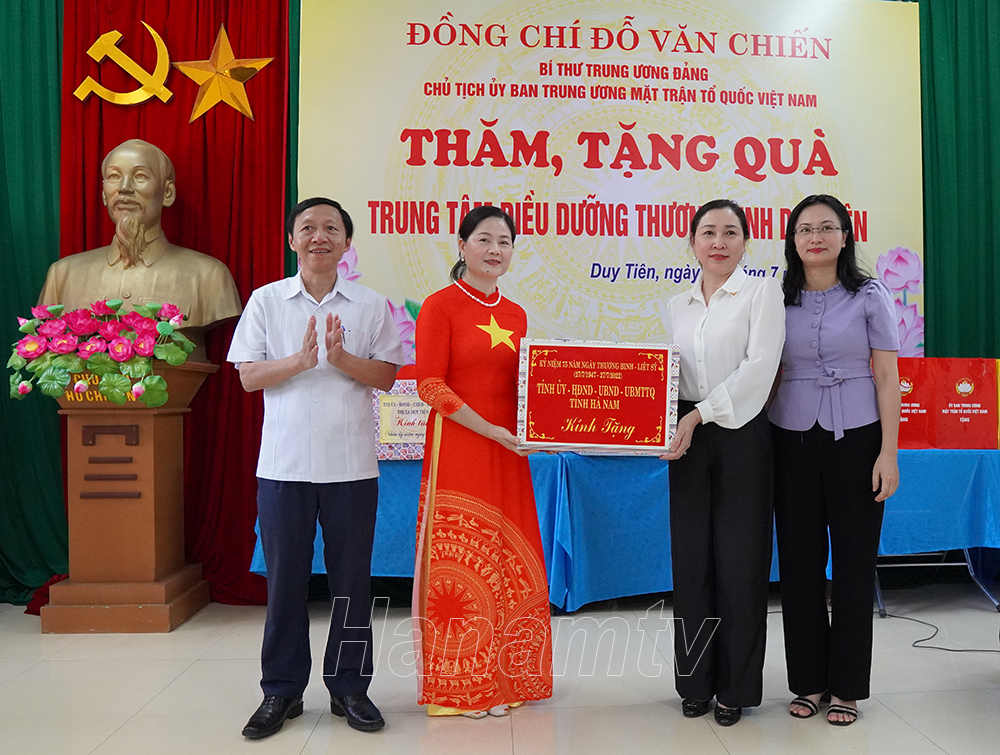 Đồng chí Đỗ Văn Chiến, Bí thư Trung ương Đảng, Chủ tịch Ủy ban Trung ương MTTQ Việt Nam thăm hỏi, tặng quà thương bệnh binh tại Trung tâm điều dưỡng thương binh Duy TiênĐồng chí Đinh Thị Lụa, Phó Bí thư Thường trực Tỉnh ủy ân cần thăm hỏi, động viên và tặng quà các thương, bệnh binh tại Trung tâm điều dưỡng thương binh Duy Tiên