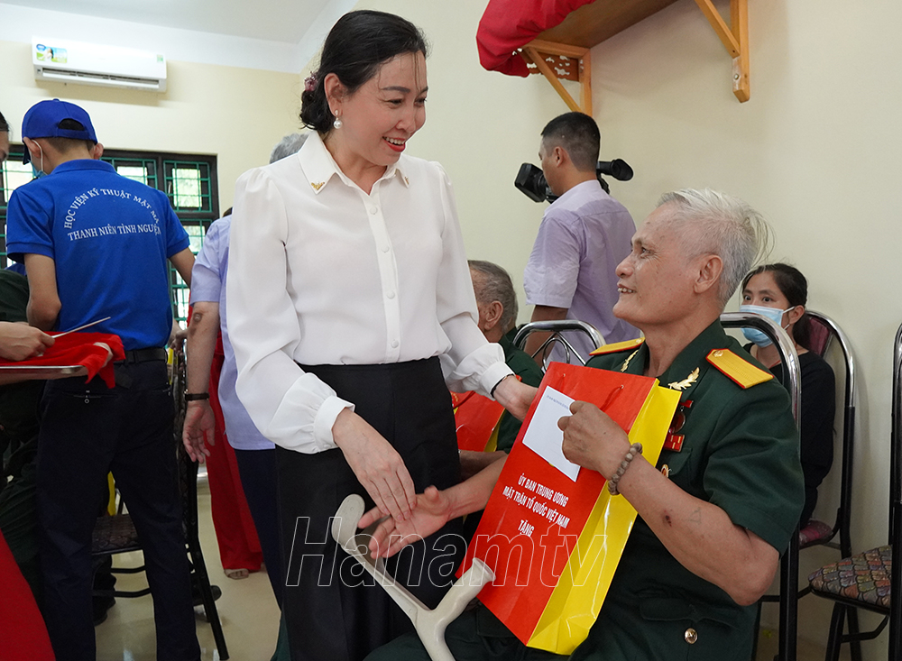 Chủ tịch Ủy ban Trung ương Mặt trận Tổ quốc Việt Nam cũng biểu dương, ghi nhận, cảm ơn Đảng bộ, Chính quyền và nhân dân tỉnh Hà Nam trong thời gian qua đã luôn quan tâm, dành nguồn lực, tình cảm, trách nhiệm chăm sóc những người có công với Tổ quốc; đặc biệt đánh giá cao nỗ lực, cố gắng của cán bộ, công chức, viên chức, người lao động tại Trung tâm điều dưỡng thương binh Duy Tiên, dù khó khăn do COVID-19 vẫn luôn hoàn thành nhiệm vụ chăm sóc, điều trị cho các thương, bệnh binh.