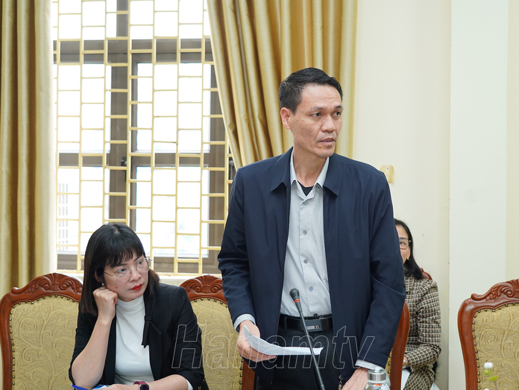 Đồng chí Lê Hồng Kỳ, Tỉnh ủy viên, Giám đốc Đài PT-TH Hà Nam phát biểu tham luận tại hội nghị.