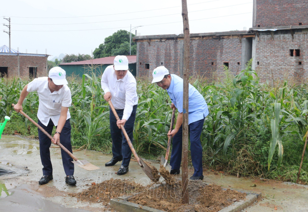 Đồng chí Phó Chủ tịch UBND tỉnh cùng các đại biểu trồng cây xanh tại phố Đồi Vàng, thị trấn Ba Sao, huyện Kim Bảng.