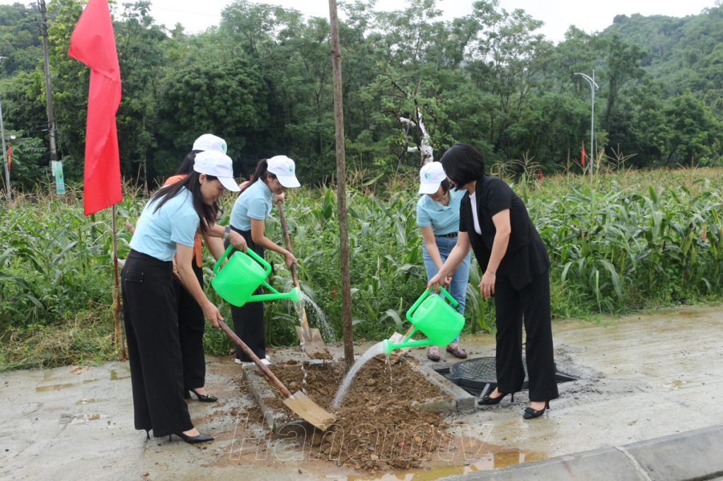 Sau lễ phát động, các đại biểu tham gia hưởng ứng trồng cây xanh tại phố Đồi Vàng, thị trấn Ba Sao, huyện Kim Bảng