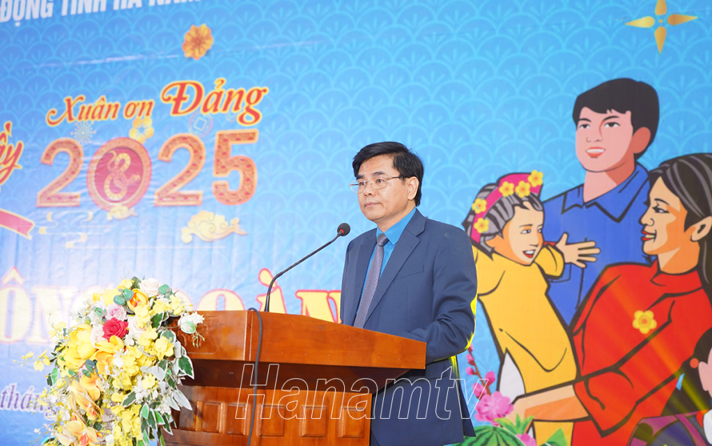 Phát biểu khai mạc chương trình, Chủ tịch Liên đoàn Lao động tỉnh Nguyễn Hải Long cho biết, để tiếp tục chăm lo cho đoàn viên và người lao động, đặc biệt là trong dịp Tết Nguyên đán Ất Tỵ năm 2025 và với phương châm “Tất cả đoàn viên, người lao động đều có tết”, Liên đoàn Lao động tỉnh cùng các cấp công đoàn trong hệ thống đã chuẩn bị hơn 10.000 suất quà, mỗi suất trị giá 800.000đ, và 1.000 vé xe đầy nghĩa tình gửi tới đoàn viên, người lao động có hoàn cảnh khó khăn, thu nhập thấp, mắc bệnh hiểm nghèo; bị tai nạn lao động nặng, công nhân có quê xa trên 150 km, đoàn viên, người lao động không có điều kiện về quê đón Tết.