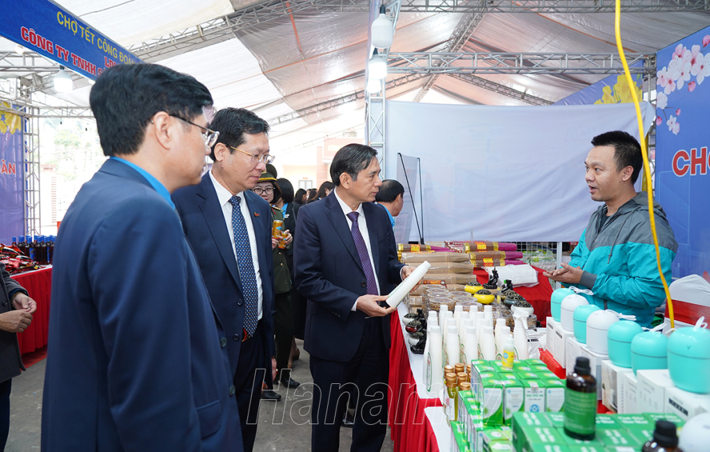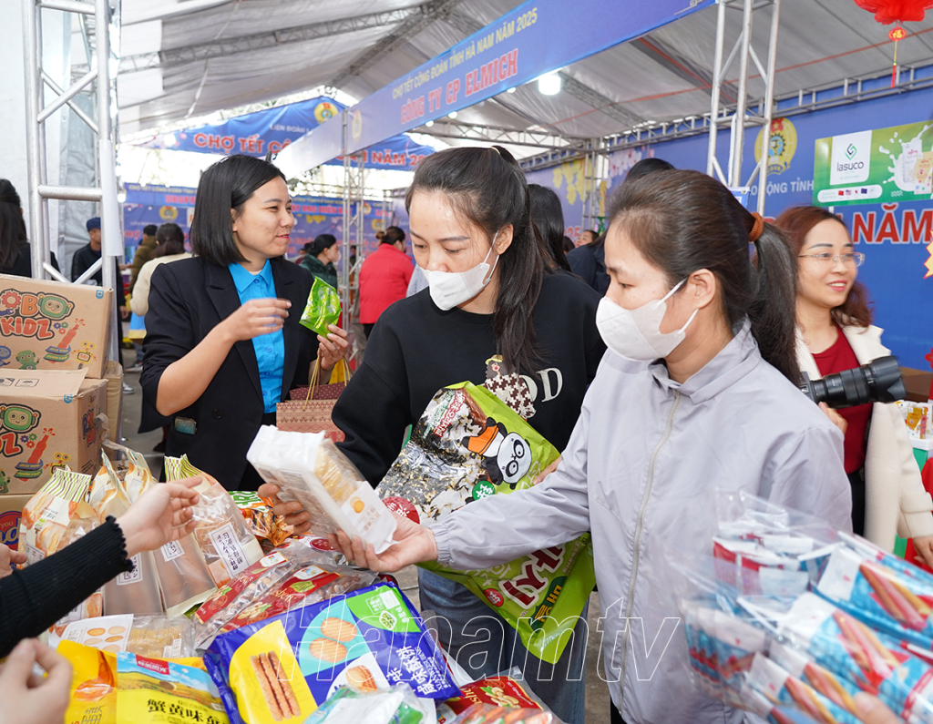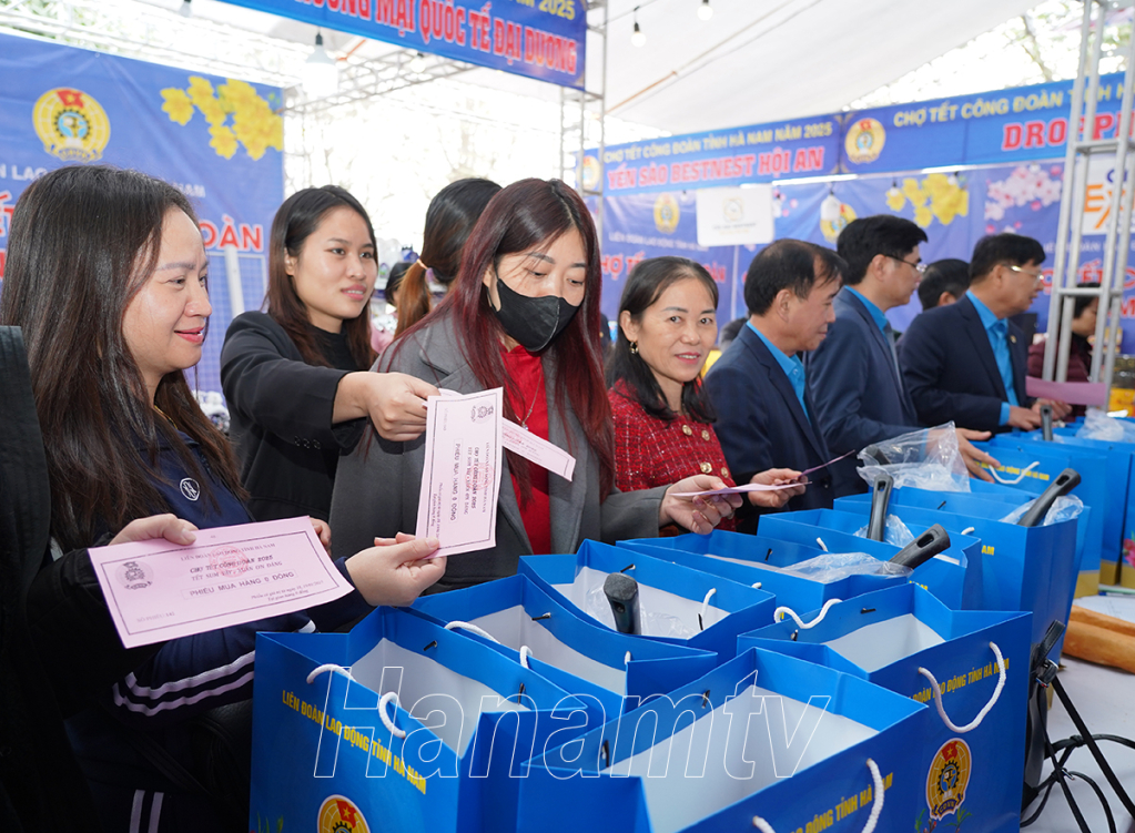 Cũng tại chương trình, các đại biểu đã khai mạc Chợ Tết Công đoàn Xuân Ất Tỵ năm 2025. Chương trình diễn ra trong 2 ngày (từ 18-19/1), Ban tổ chức bố trí 40 gian hàng trưng bày, giới thiệu sản phẩm, dịch vụ, bán hàng ưu đãi cho công nhân lao động, trong đó có gian hàng “0 đồng”. Ban tổ chức phát 2.000 phiếu mua hàng giảm giá (trị giá 300.000 đồng/phiếu), 400 phiếu mua hàng 0 đồng tặng công nhân lao động có hoàn cảnh khó khăn.