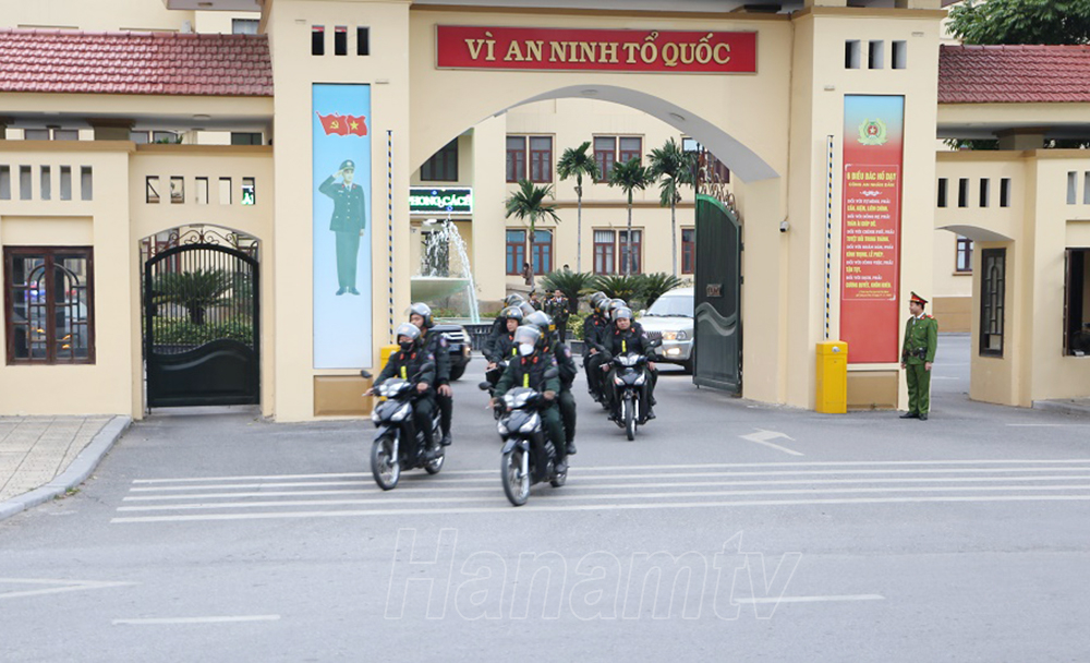 Các lực lượng Công an tỉnh đã tổ chức diễu hành biểu dương lực lượng dọc một số tuyến đường trung tâm thành phố Phủ Lý.