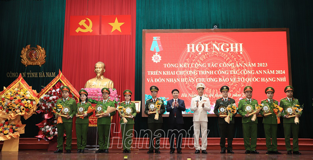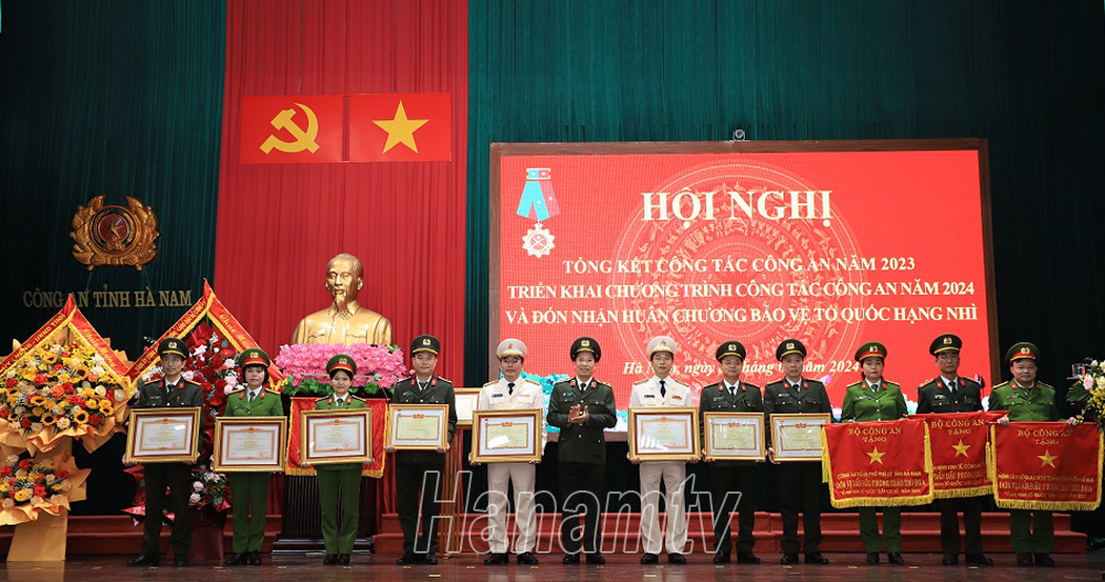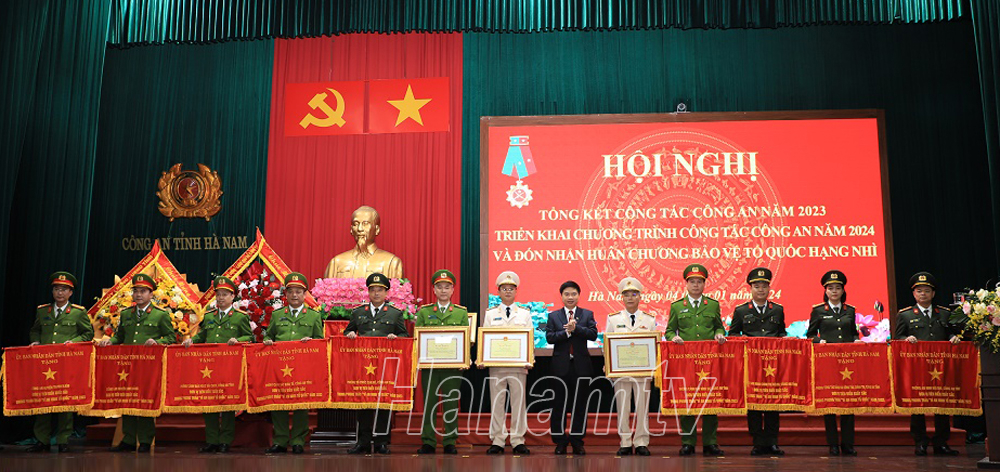 Thừa ủy quyền của lãnh đạo Đảng, Nhà nước, Trung tướng Lê Văn Tuyến, Thứ trưởng Bộ Công an đã gắn Huân chương lên lá cờ truyền thống của Công an tỉnh Hà Nam và trao Bằng Huân chương bảo vệ Tổ quốc hạng Nhì cho Công an tỉnh Hà Nam; 04 cá nhân có thành tích xuất sắc được Thủ tướng Chính phủ tặng Bằng khen; 05 cá nhân được trao danh hiệu “Chiến sĩ thi đua toàn lực lượng Công an”; 12 tập thể được Bộ Công an, UBND tỉnh tặng Cờ thi đua; 03 cá nhân được trao Bằng khen của UBND tỉnh.
