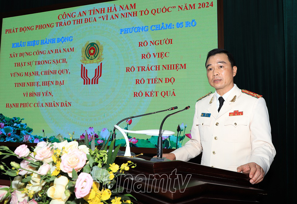 Đại tá Tô Anh Dũng,Ủy viên BTV Đảng ủy, Bí thư Đảng ủy, Giám đốc Công an tỉnh phát động phong trào thi đua "Vì an ninh Tổ quốc" năm 2024