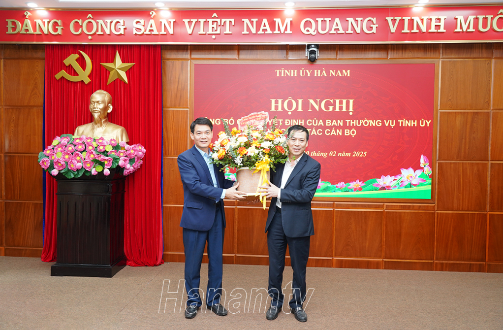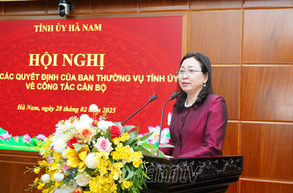Chiều 20/2, Tỉnh ủy Hà Nam tổ chức hội nghị công bố các quyết định của Ban Thường vụ (BTV) Tỉnh ủy về công tác cán bộ. Đồng chí Đinh Thị Lụa, Phó Bí thư Thường trực Tỉnh ủy, Bí thư Đảng ủy các cơ quan Đảng tỉnh chủ trì hội nghị.