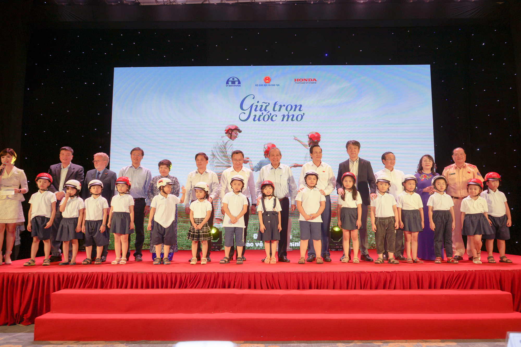 Tối 12/6, Ủy ban An toàn giao thông quốc gia phối hợp với Bộ GD&ĐT và Công ty Honda Việt Nam tổ chức lễ công bố chương trình tặng mũ bảo hiểm cho học sinh lớp 1 toàn quốc năm học 2019-2020 với chủ đề “Giữ trọn ước mơ”.