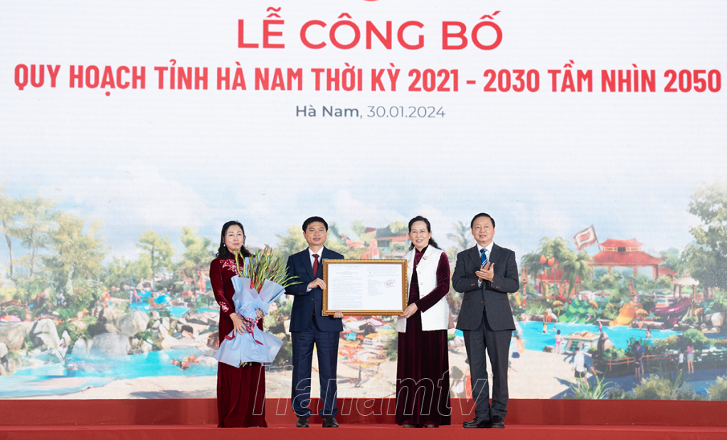 Sáng 30/1, UBND tỉnh Hà Nam tổ chức Hội nghị công bố Quy hoạch tỉnh Hà Nam thời kỳ 2021-2030, tầm nhìn đến năm 2050; Khởi công Tổ hợp dự án Khu đô thị mới Bắc Châu Giang (Thành phố Phủ Lý). Đồng chí Trần Hồng Hà, Ủy viên Trung ương Đảng, Phó Thủ tướng Chính phủ dự và trao Quyết định phê duyệt Quy hoạch tỉnh Hà Nam thời kỳ 2021-2030, tầm nhìn đến năm 2050.