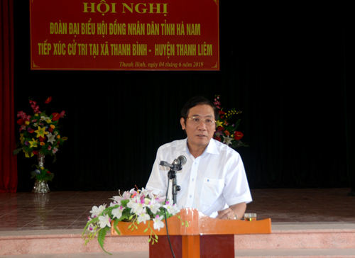 Đồng chí Phạm Sỹ Lợi, Phó Bí thư Thường trực Tỉnh ủy, Chủ tịch HĐND tỉnh cùng tổ đại biểu HĐND tỉnh và lãnh đạo huyện Thanh Liêm tiếp xúc cử tri tại xã Thanh Bình và thôn Thong, Thanh Tâm (Thanh Liêm)