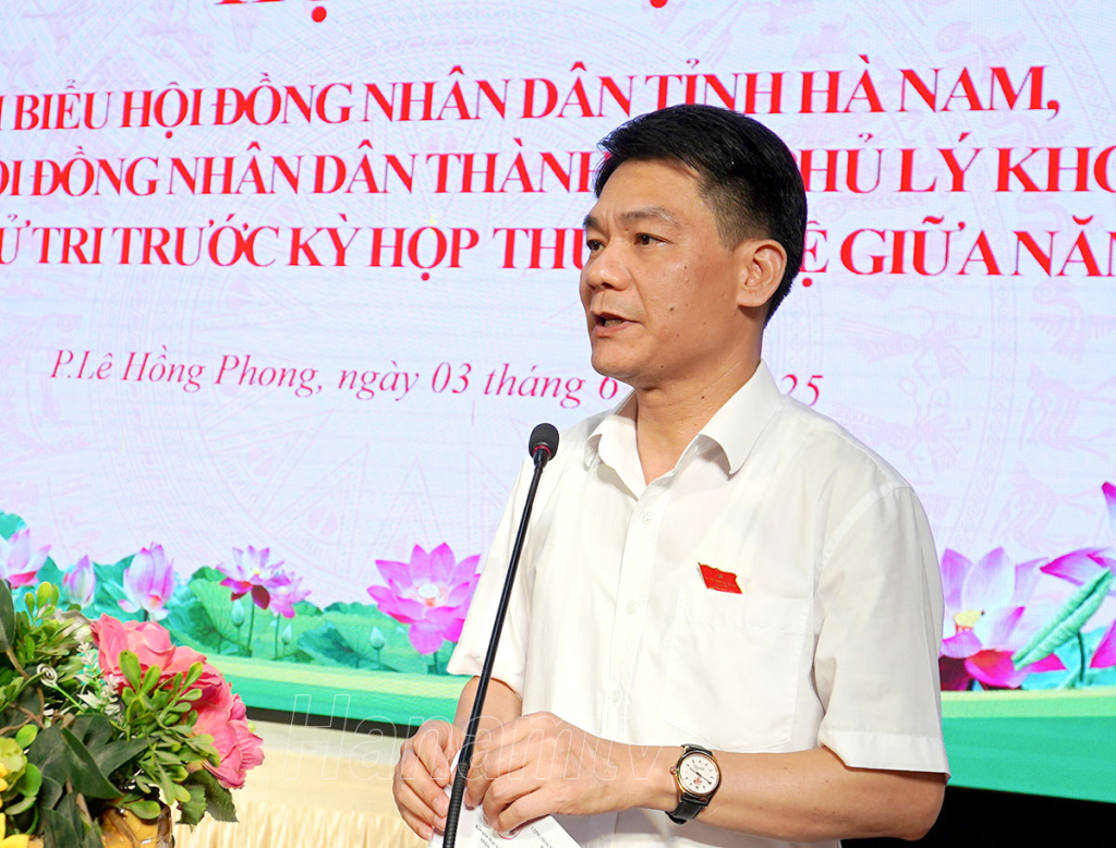 Đồng thời, cử tri đề nghị cấp trên quan tâm, tạo điều kiện bố trí, quy hoạch quỹ đất để xây dựng các nhà văn hóa và nơi sinh hoạt cộng đồng cho các thôn, tổ dân phố sau sáp nhập; nâng cấp đoạn quốc lộ 37B (nay là đường Lý Nhân Tông, xã Yên Nam) đoạn cống I4 – 12, do mặt đường thấp, khi mưa kéo dài gây lụt úng, nước sông Châu Giang dâng lên tràn qua đường, gây nguy hiểm cho khu dân cư thôn Thận Y, Điệp Sơn, một phần phường Yên Bắc và xã Tiên Ngoại; mở rộng mặt cống Điệp Sơn, tuyến giao thông nối giữa huyện Lý Nhân và thị Duy Tiên vì nơi đây thường xuyên ùn tắc giao thông; đề nghị các cấp có thẩm quyền có giải pháp trong việc bảo mật thông tin cá nhân của người dân khi đóng góp ý kiến qua ứng dụng VNeld…