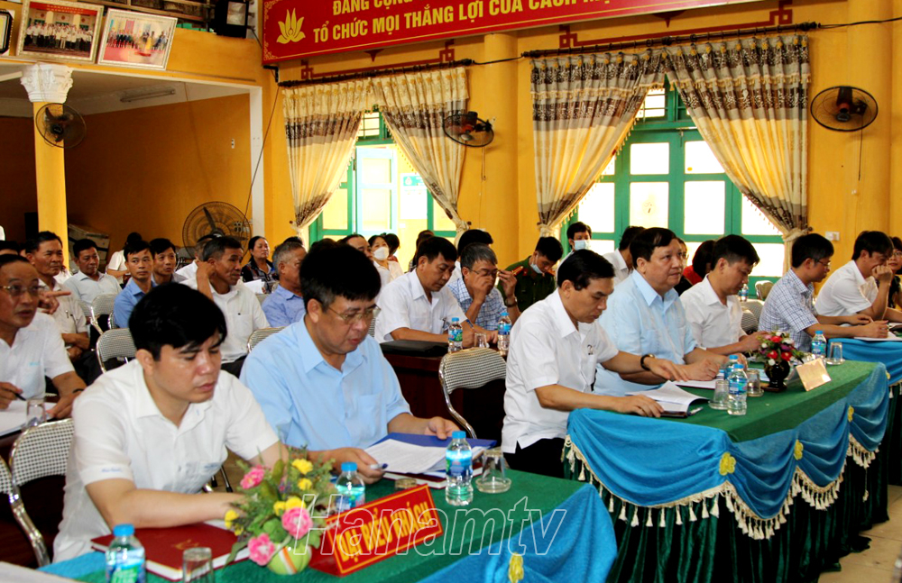 Đồng chí Lê Hồng Quân, Ủy viên BTV Tỉnh ủy, Chủ nhiệm Ủy ban Kiểm tra (UBKT) Tỉnh ủy cùng đoàn đại biểu HĐND tỉnh, HĐND thị xã Duy Tiên tiếp xúc cử tri xã Tiên Sơn.