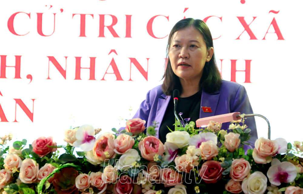 Phát biểu tại buổi tiếp xúc cử tri, đồng chí Lê Thị Nga, Ủy viên Trung ương Đảng, Ủy viên Ủy ban Thường vụ Quốc hội, Chủ nhiệm Ủy ban Tư pháp Quốc hội ghi nhận, tiếp thu, giải trình và thông tin một số nội dung, vấn đề cử tri quan tâm. Đối với những ý kiến thuộc thẩm quyền giải quyết của Trung ương, Đoàn ĐBQH tỉnh sẽ tiếp thu, tổng hợp đầy đủ để gửi đến Quốc hội và các cơ quan chức năng xem xét, giải quyết theo quy định, đồng thời mong muốn cử tri các địa phương tiếp tục quan tâm theo dõi góp ý cho hoạt động của Đoàn ĐBQH tỉnh để đoàn thực hiện tốt nhiệm vụ được giao.