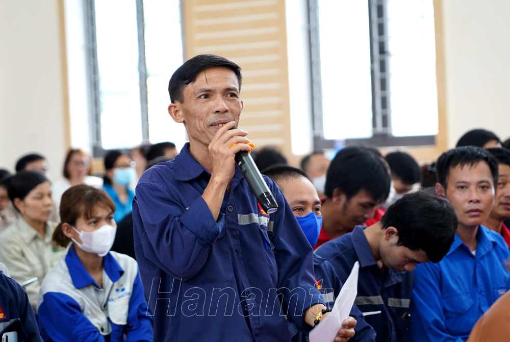 Công nhân, người lao động Hà Nam phát biểu ý kiến tại buổi tiếp xúc