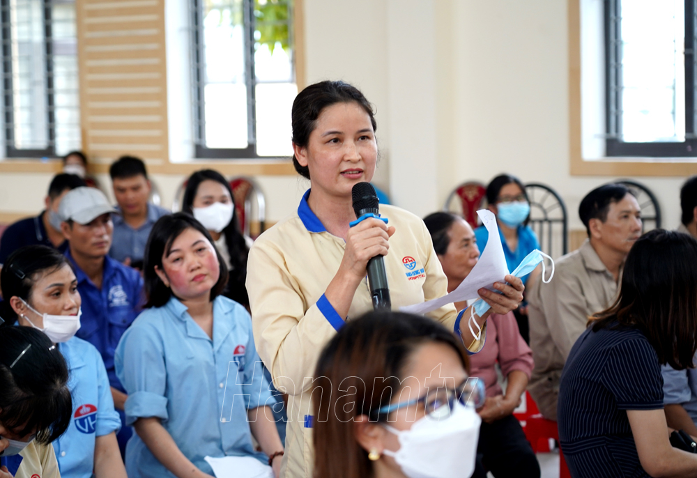 Đại diện tổ chức công đoàn, công nhân lao động đã nêu lên nhiều ý kiến, kiến nghị đối với Quốc hội, Chính phủ và tỉnh Hà Nam, bày tỏ sự quan tâm đến những vấn đề liên quan đến đời sống của công nhân, người lao động như tạo việc làm, nâng cao thu nhập, tiền lương, nhà ở xã hội cho người có thu nhập thấp, các thiết chế văn hóa công đoàn, chế độ bảo hiểm xã hội, phát triển giáo dục mầm non, chính sách lao động nữ…