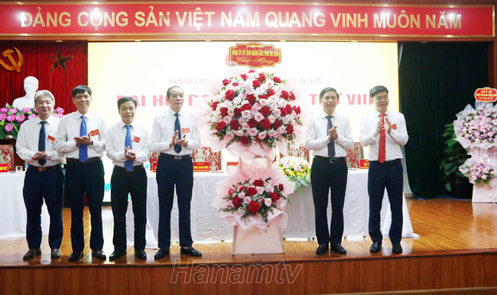 Đồng chí Trần Xuân Dưỡng, Tỉnh ủy viên, Phó Chủ tịch UBND tỉnh tặng hoa chúc mừng Đại hội.