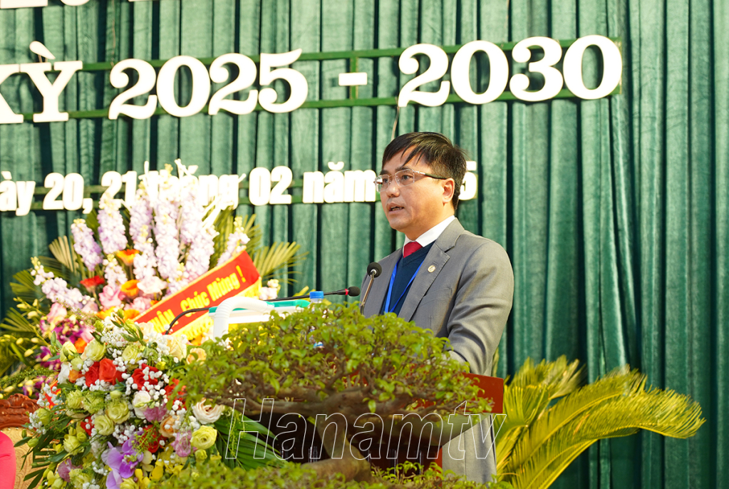 Đồng chí Bùi Văn Hoàng, Tỉnh ủy viên, Bí thư Huyện ủy Lý Nhân phát biểu chỉ đạo Đại hội.