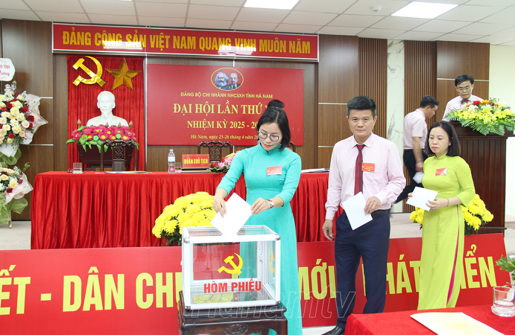 Các đại biểu bầu Ban Chấp hành Đảng bộ Chi nhánh Ngân hàng Chính sách xã hội tỉnh Hà Nam khóa VII.