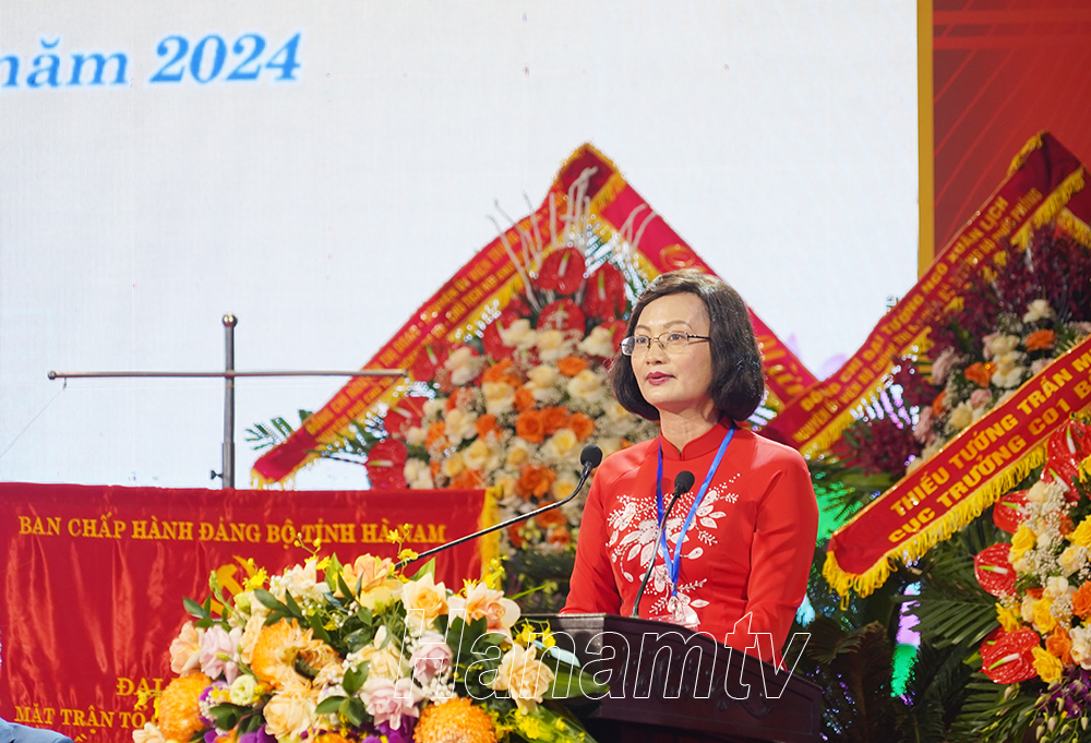 Phát biểu chỉ đạo Đại hội, đồng chí Nguyễn Thị Thu Hà, Ủy viên Trung ương Đảng, Phó Chủ tịch – Tổng Thư ký Ủy ban Trung ương MTTQ Việt Nam biểu dương, ghi nhận những kết quả mà MTTQ các cấp trong tỉnh đã đạt được trong nhiệm kỳ qua. Đồng chí khẳng định, những kết quả đạt được đã góp phần củng cố, tăng cường, phát huy sức mạnh khối đại đoàn kết toàn dân tộc, xây dựng được “thế trận lòng dân vững chắc”, động viên được các tầng lớp nhân dân đồng lòng, chung sức, cùng với cấp ủy, chính quyền, lực lượng vũ trang của tỉnh, tranh thủ thời cơ, thuận lợi, vượt qua khó khăn, thách thức, phấn đấu đạt được kết quả quan trọng, toàn diện trên các lĩnh vực. Đồng chí mong muốn và đề nghị các cấp ủy Đảng và chính quyền tỉnh Hà Nam tiếp tục quan tâm hơn nữa việc lãnh đạo xây dựng khối đại đoàn kết toàn dân tộc trong tỉnh; chăm lo xây dựng đội ngũ cán bộ Mặt trận đủ về số lượng, đảm bảo về chất lượng, phù hợp về cơ cấu. Đề nghị các tổ chức thành viên của Mặt trận Tổ quốc tỉnh tham gia thực hiện có hiệu quả các chương trình hành động mà Đại hội đề ra.