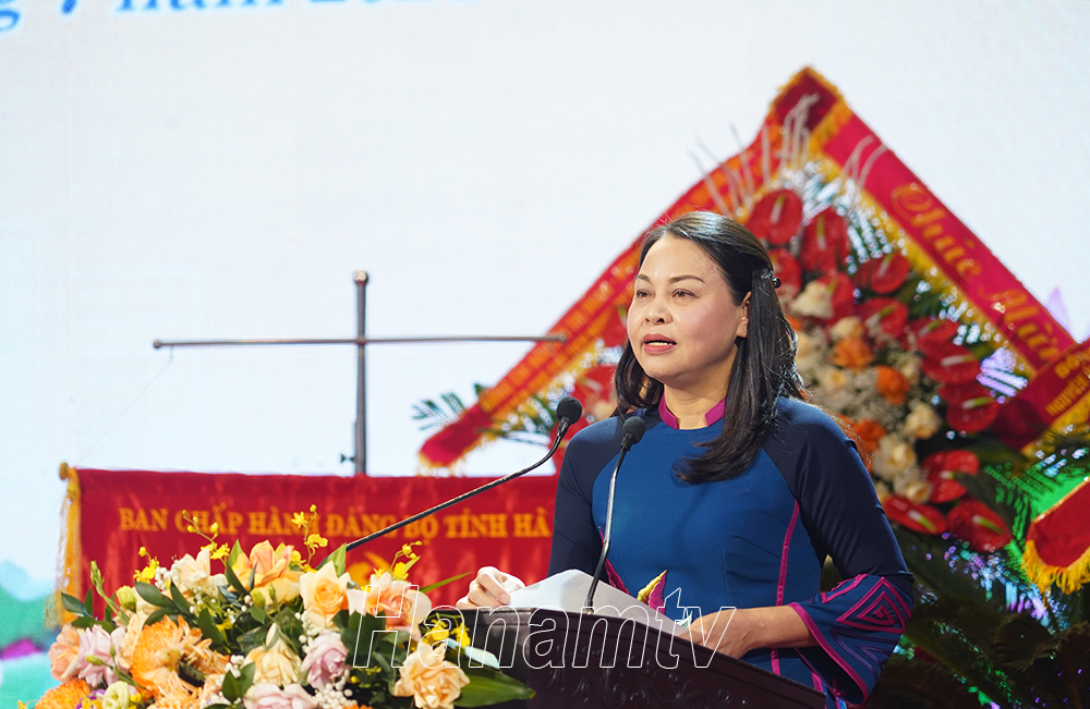 Đồng chí Lê Thị Thủy, Ủy viên Trung ương Đảng, Bí thư Tỉnh ủy, Chủ tịch HĐND tỉnh phát biểu tại Đại hội.