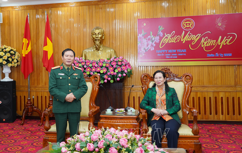 Thay mặt Đảng bộ, chính quyền và nhân dân tỉnh Hà Nam, đồng chí Bí thư Tỉnh ủy Lê Thị Thủy trân trọng cảm ơn sự quan tâm của Quân ủy Trung ương, Bộ Quốc phòng, Đại tướng Nguyễn Tân Cương cùng đoàn công tác. Báo cáo với đoàn công tác những nét nổi bật của tỉnh trong năm 2024, đồng chí Bí thư Tỉnh ủy khẳng định, trong thời gian tới, Tỉnh ủy, HĐND, UBND tỉnh luôn quan tâm chỉ đạo thực hiện tốt nhiệm vụ phát triển kinh tế - xã hội gắn với tăng cường củng cố quốc phòng – an ninh; thực hiện tốt chính sách hậu phương quân đội; hoạt động “Đền ơn đáp nghĩa”, góp phần cải thiện và nâng cao đời sống nhân dân. Đồng chí mong muốn tiếp tục nhận được sự quan tâm của Quân ủy Trung ương, Bộ Quốc phòng, Bộ Tư lệnh Quân khu 3 để tỉnh Hà Nam phát huy được tiềm năng, lợi thế, thúc đẩy tăng trưởng kinh tế-xã hội của địa phương.