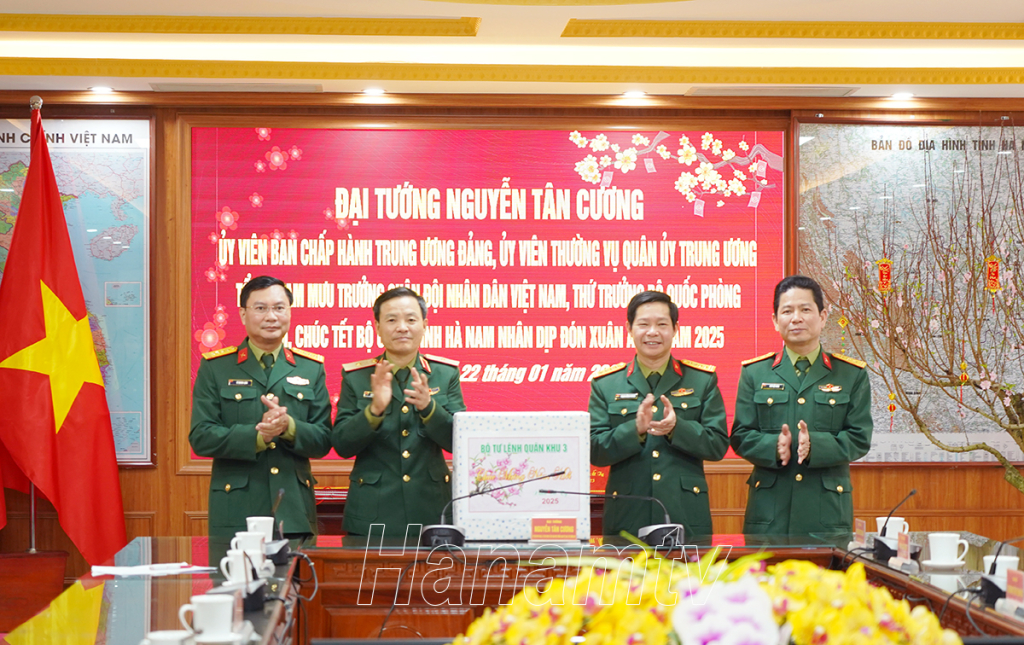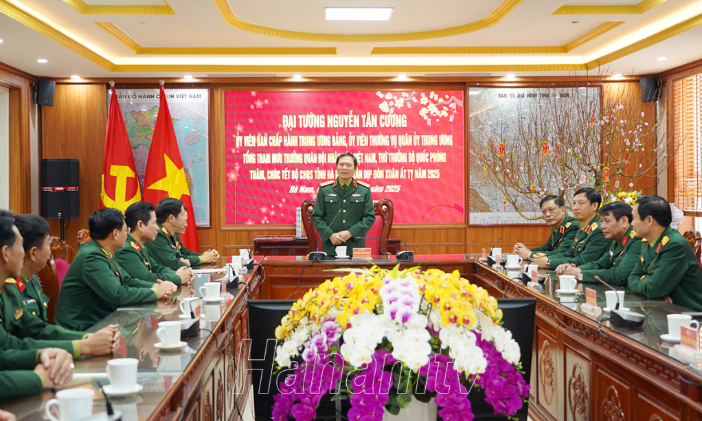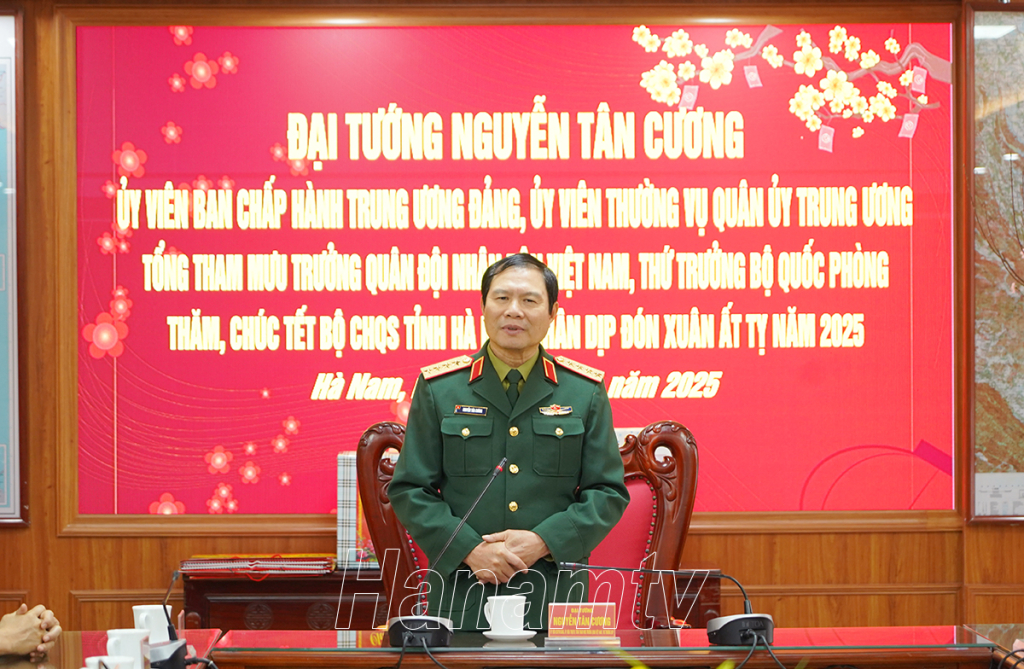 Sáng 22/1, nhân dịp chuẩn bị đón Tết Nguyên đán Ất Tỵ 2025, Đại tướng Nguyễn Tân Cương, Ủy viên Trung ương Đảng, Ủy viên Thường vụ Quân ủy Trung ương, Tổng Tham mưu trưởng Quân đội nhân dân Việt Nam, Thứ trưởng Bộ Quốc phòng đã đến thăm, chúc Tết Đảng bộ, chính quyền, lực lượng vũ trang (LLVT) và nhân dân tỉnh Hà Nam. Cùng đi có đại diện lãnh đạo Bộ Tổng Tham mưu; Tư lệnh Quân khu 3.