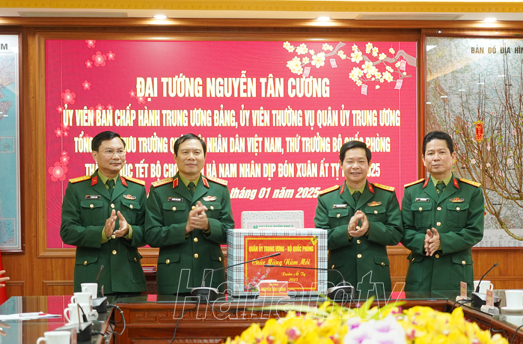 Nhân dịp Tết Nguyên đán Ất Tỵ 2025, thay mặt Quân ủy Trung ương, lãnh đạo Bộ Quốc phòng, Đại tướng Nguyễn Tân Cương gửi lời chúc Đảng bộ, chính quyền, LLVT và nhân dân tỉnh Hà Nam đón Tết vui tươi, an toàn, tiết kiệm; lập nhiều thành tích chào mừng 95 năm Ngày thành lập Đảng Cộng sản Việt Nam và hướng tới Đại hội Đảng các cấp, nhiệm kỳ 2025-2030.