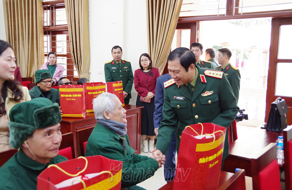 Đại tướng Nguyễn Tân Cương tặng quà Tết cho các đồng chí lãnh đạo tỉnh Hà Nam.Thiếu tướng Lương Văn Kiểm - Phụ trách Tư lệnh Quân khu 3 tặng quà Tết cho các đồng chí lãnh đạo tỉnh Hà Nam.