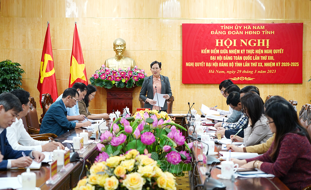 Chiều 29/3, Đảng đoàn HĐND tỉnh tổ chức Hội nghị kiểm điểm, đánh giá kết quả giữa nhiệm kỳ công tác lãnh đạo, chỉ đạo triển khai thực hiện Nghị quyết (NQ) Đại hội Đảng toàn quốc lần thứ XIII, NQ Đại hội Đảng bộ tỉnh lần thứ XX, nhiệm kỳ 2020-2025. Đồng chí Lê Thị Thủy, Ủy viên TW Đảng, Bí thư Tỉnh ủy, Bí thư Đảng đoàn, Chủ tịch HĐND tỉnh dự, chỉ đạo hội nghị.