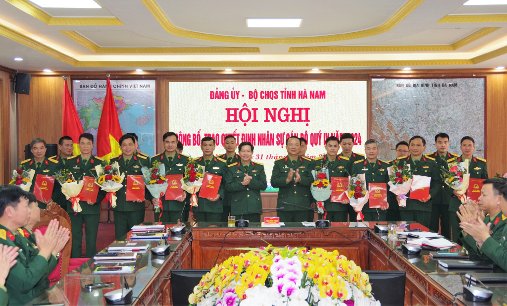 Bộ CHQS tỉnh công bố, trao quyết định nhân sự cán bộ