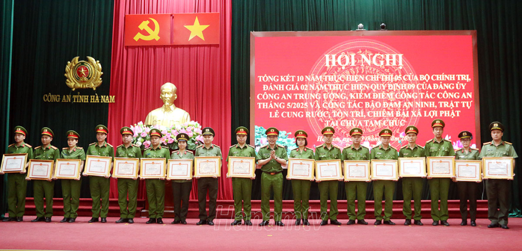 Nhân dịp này, nhiều tập thể, cá nhân có thành tích xuất sắc trong 10 năm thực hiện Chỉ thị 05 của Bộ Chính trị và bảo đảm ANTT tại Lễ cung rước, tôn trí, chiêm bái xá lợi Đức Phật và Đại lễ Phật đản tại chùa Tam Chúc được Chủ tịch UBND tỉnh và Giám đốc Công an tỉnh biểu dương, khen thưởng.