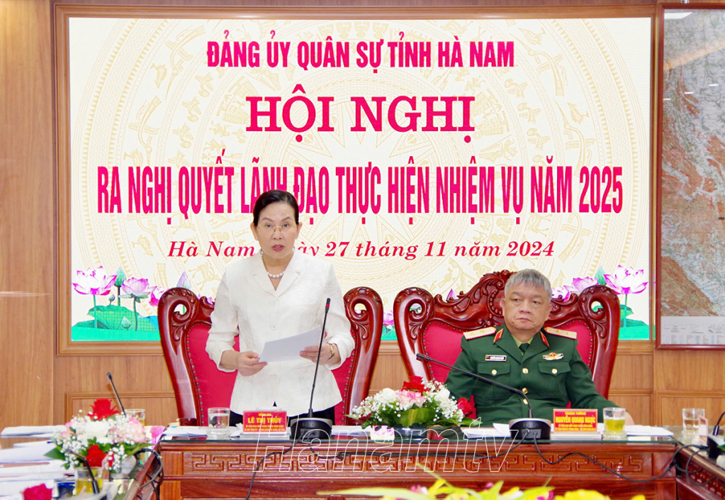 Tiếp thu ý kiến chỉ đạo của đồng chí Tư lệnh Quân khu 3, đồng chí Bí thư Tỉnh ủy Lê Thị Thủy khẳng định: ĐUQS tỉnh sẽ cụ thể hoá thành chương trình, kế hoạch trong triển khai thực hiện nhiệm vụ thời gian tới. Đồng thời nhấn mạnh: năm 2025 ĐUQS tỉnh tập trung lãnh đạo, chỉ đạo thực hiện toàn diện các chỉ tiêu chủ yếu và nhóm giải pháp được xác định trong dự thảo nghị quyết. Trong đó, tiếp tục chỉ đạo đẩy nhanh tiến độ hoàn thành các dự án xây dựng công trình quân sự trong khu vực phòng thủ cấp tỉnh, huyện đã được phê duyệt. Các địa phương căn cứ vào nguồn lực, bố trí ngân sách xây dựng căn cứ hậu cần, kỹ thuật trong căn cứ hậu phương.