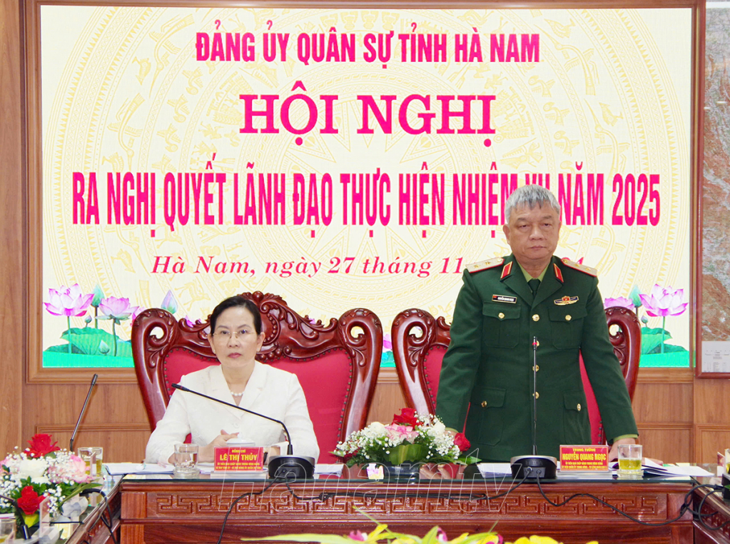 Phát biểu tại hội nghị, Trung tướng Nguyễn Quang Ngọc, Tư lệnh Quân khu 3 ghi nhận, biểu dương những kết quả đạt được trong lãnh đạo, chỉ đạo thực hiện nhiệm vụ QP, QSĐP của ĐUQS tỉnh. Đồng thời đề nghị: năm 2025 có nhiều sự kiện chính trị quan trọng của Đảng, Nhà nước, đặc biệt là năm tổ chức đại hội đảng bộ các cấp tiến tới Đại hội đại biểu toàn quốc lần thứ XIV của Đảng, ĐUQS tỉnh cần tiếp tục phát huy kết quả đạt được, khắc phục những tồn tại, hạn chế, tích cực tham mưu với Tỉnh uỷ, UBND tỉnh lãnh đạo, chỉ đạo hoàn thành thắng lợi nhiệm vụ chính trị được giao. Phối hợp nắm chắc tình hình địa bàn, kịp thời tham mưu giải quyết các vấn đề phức tạp từ cơ sở, góp phần giữ vững ổn định tình hình địa bàn, giải quyết tốt những vấn đề phát sinh từ cơ sở. Tập trung rà soát, hoàn thành các mục tiêu, chỉ tiêu, nhiệm vụ theo nghị quyết đại hội đảng bộ các cấp nhiệm kỳ 2020-2025 và các nhiệm vụ còn lại của năm 2024. Chuẩn bị tốt cho đại hội đảng các cấp nhiệm kỳ 2025-2030.