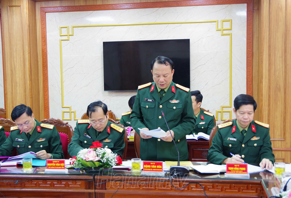 Đại diện lãnh đạo ĐUQS tỉnh trình bày dự thảo Nghị quyết lãnh đạo thực hiện nhiệm vụ năm 2025.