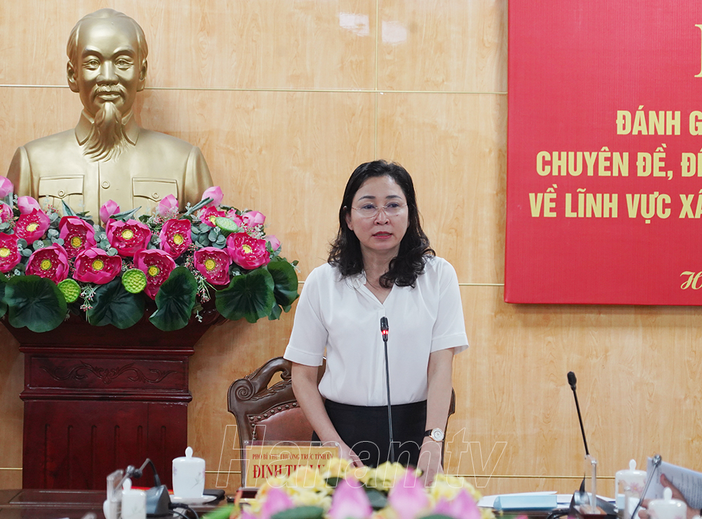 Đồng chí Đinh Thị Lụa, Phó Bí thư Thường trực Tỉnh ủy phát biểu kết luận hội nghị.