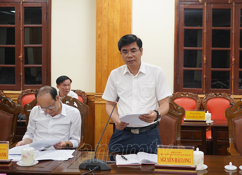 Đồng chí Nguyễn Hải Long, Tỉnh ủy viên, Phó Trưởng Ban Tuyên giáo Tỉnh ủy trình bày báo cáo triển khai thực hiện Nghị quyết số 04 -NQ/TU của BTV Tỉnh ủy về “Tăng cường sự lãnh đạo của Đảng đối với công tác tư tưởng trong tình hình mới”