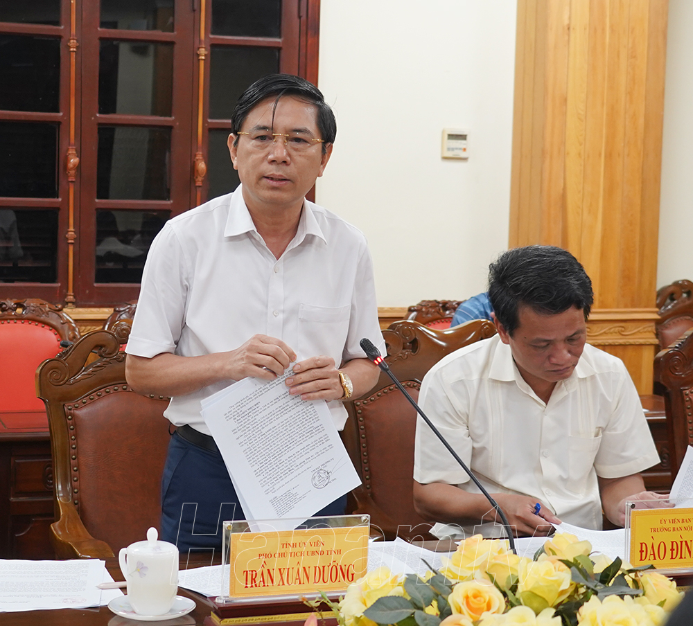 Đồng chí Trần Xuân Dưỡng, Tỉnh ủy viên, Phó Chủ tịch UBND tỉnh phát biểu tại hội nghị