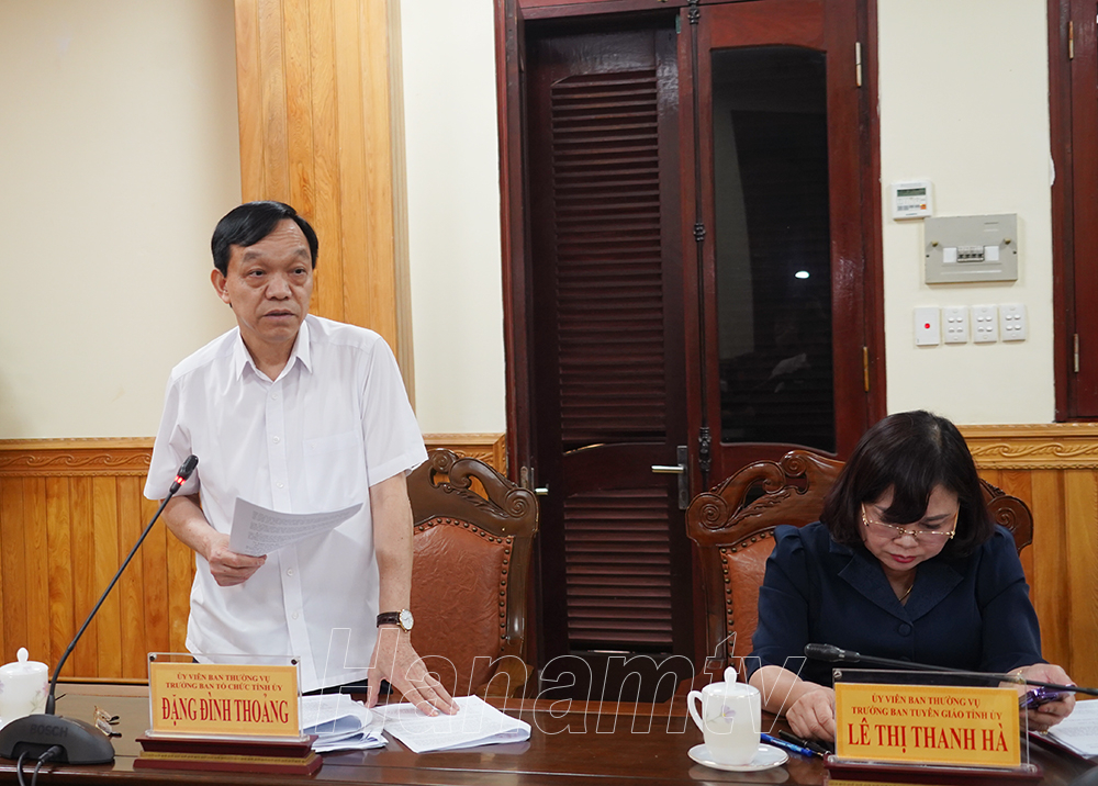 Đồng chí Đặng Đình Thoảng, Ủy viên BTV Tỉnh ủy, Trưởng Ban Tổ chức Tỉnh ủy phát biểu tại hội nghị